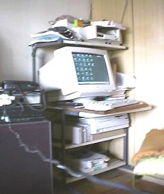 スピーカーの上に何か乗っていますが、これはモデムと電話です。