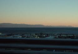 | 富士山頂は凄い風のようです。 | 行きの東名の車中から、夕日が綺麗だった。 |
