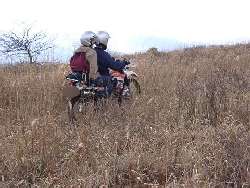 ウッズの濡れ落ち葉では、タンデムだとトラク ションが掛かっているし、止ってもしまっても 専属のようにサッと降りて押してもらえて、 GOOD。 |