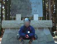 | 石碑の前で小休止、ハイ!ポーズ | |