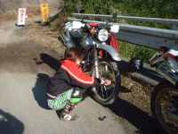 まーた、千葉に2人して行って来ました。今回は経費節約でトランポは自宅待機。自走で行きました。フェリー代で2000円以上違うから・・・・。小湊自走組の人の気持ちを思うべく、寒さ対策でカッパを履き、フリースを着込んで、防寒はOKかな。