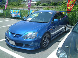 またまたDC5です^^;てかやっぱり自分と同じクルマは気になるものです、あ!名前聞くの忘れた^^;すいません、でもじっくり見させていただきましたよ^^このクルマの注目する点は、リアのキャンバー角です、リアアッパーアームを調整式にしています、写真左隅に写っているのが私の車なんですけど、明らかにリアのキャンバー角が違います、DC5は車高を落とすと、だらだらとキャンバーが付きます、これは効果がありそうだしセッティングの幅も広がりますね、いや〜楽しそうです、あと私もやろうかなと思ったのは、純正のホイールのセンターキャップを取っぱらう!、これはイィ!!