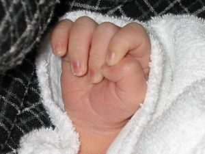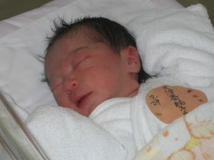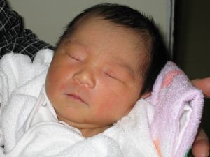 | ちっちゃな手。。。 | 生後1日、少し顔が丸くなってきました。 髪は思ったより多いですね。 |