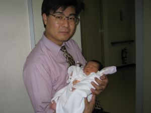 | あらためて、新米パパのだっこ。 大人しく寝てくれてて助かりました |