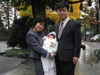 亀ヶ池八幡宮にて、お父さんお母さんと。