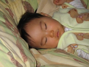 | 満1歳の誕生日の朝。 まだぐっすり眠っています。 |