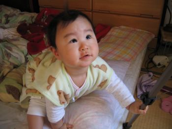 起床! 寝起きの良さはお父さん譲りか? |