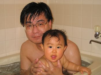 | お父さんと一緒にお風呂。 いくつまで一緒に入ってくれるかな? |