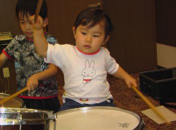 お父さんのようにドラムを叩いてみよう。
