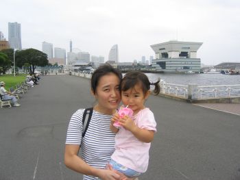 うしろに見えるのはみなとみらいです。