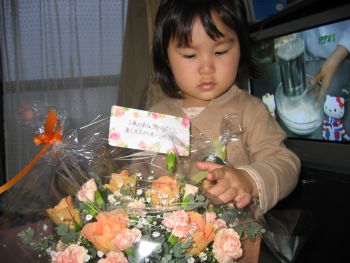 お花に興味津々。