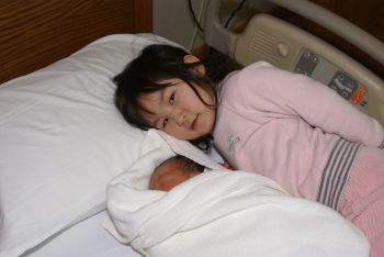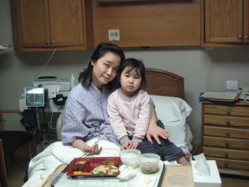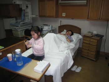 | お母さんが産気づき、病院へ。 この病院では家族同室で宿泊します。。 |