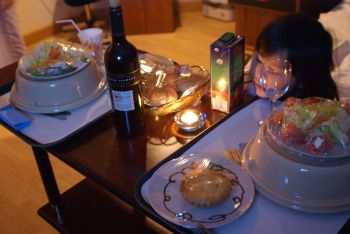 | でも、だんだん不安も見え隠れ。 一人っ子最後のお母さんと一緒の夕食。 |