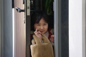 | いい笑顔で帰宅! 公寓内のお散歩江出かけます。 |