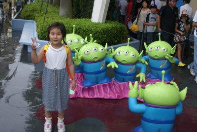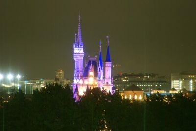 夜のシンデレラ城 リトルグリーンメンと一緒