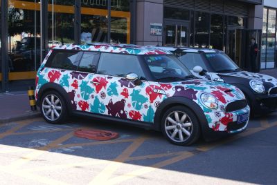 | カワイイ柄のミニクーパー | ラッフルズホテル前の国旗郡 |