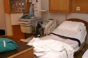 | お母さんが不在のベッド。後に戦場となります。 実はベッド自体が分娩台になってしまうのです。 |
