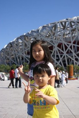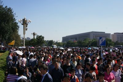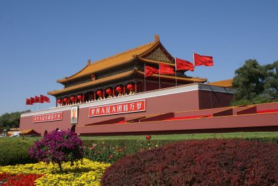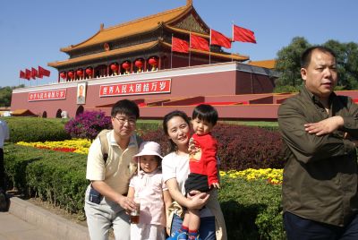 | 天安門前はすごい数の人、人、人。。。 | 天安門。国旗がはためいています。 | |