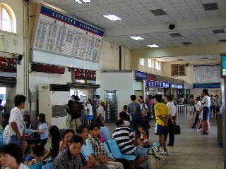 - 駅舎内は田舎の乗換駅といった感じ。ここから台北方面や台中方面の電車が出ます。自強号などの速い列車は指定席が3日前から売り出されますが、あっという間に売り切れてしまいます。立ち席であれば自販機でも購入できますが、台北や台中に移動するのに1時間以上立つのはつらいのでバスでの移動をお奨めします。