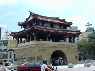 - 1733年に先住民によって築かれた竹の壁で囲われた城、竹塹城(竹子城)がその原型で、新竹の名前の由来となっています。1829年に石と煉瓦でできた塀で囲われた4つの門(東:迎曦問,西:把爽門,南:歌薫門,北:拱辰門)をもつ城として生まれ変わりました。塀は5.76m、門は6.69mあり、塀の長さは2752mに及んだそうです。1895年には日本により陥落し、太平洋戦争により消失しましたが、この東門は修復され美しさを取り戻しました。ここが円環(ロータリー)になっていて街の中心になっています。