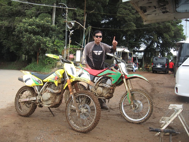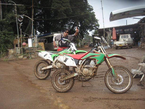 晴れ続きでdryと思ったのにヌルヌル、泥に滑ってDRZ125は走れませんでした。