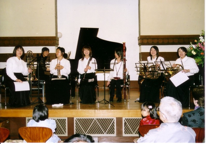 ![]() トロンボーン、トランペット、クラリネット、ファゴット、ホルン、ピアノ 「アルカリイオン水」のみなさん |