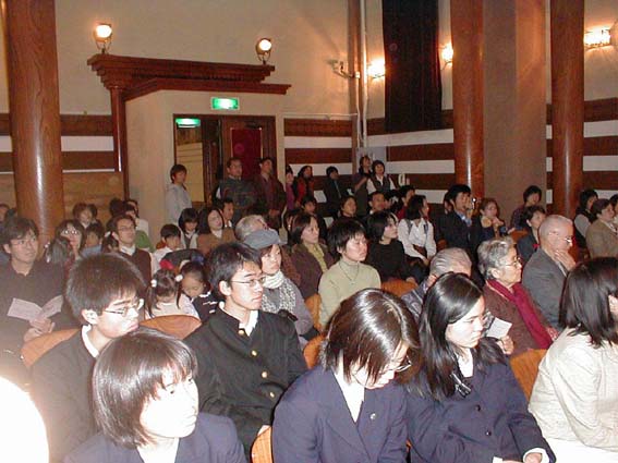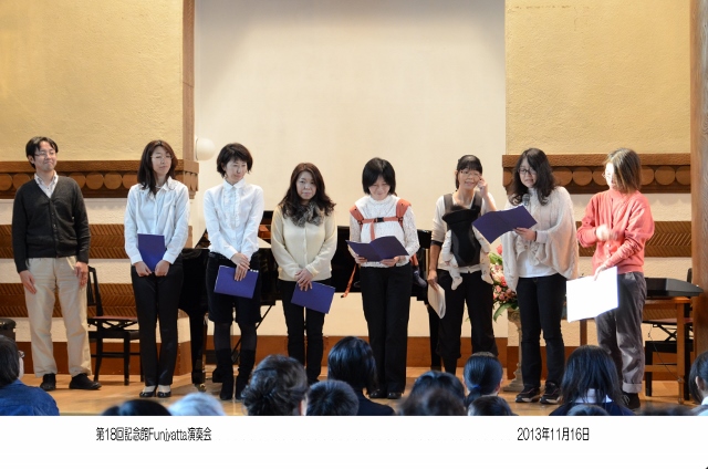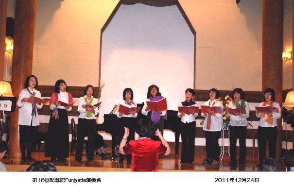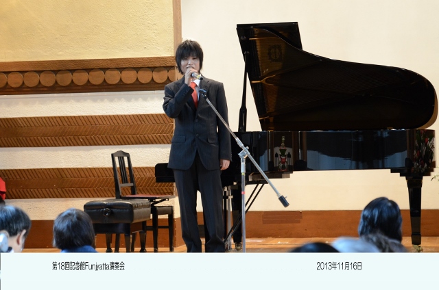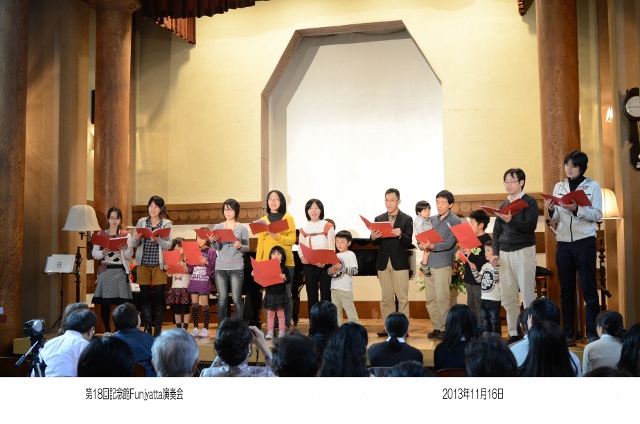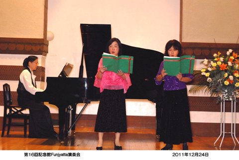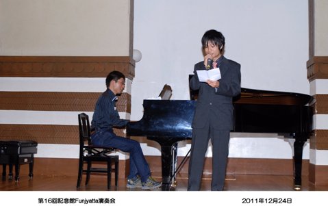 | 今年も「Funjyatta」の季節が来ました。 間違えてもいいじゃない! 楽しくやりませんか みんな来てくれて、ありがとね!! 最近は、音楽を人生の楽しみとして一生弾いていこうとする余裕が出てきました。 これは、当家のピアノの先生である「武田仁美先生」の願いです。 また、横浜翠嵐高校・川和高校の音楽部元顧問の「城戸まゆみ先生」のコンセプトです。 演奏会は、「ピアノ」は勿論、その他「サックス」「フルート」「クラリネット」 「リコーダーとファゴット」 「アルパ」「お琴」「バイオリン」「インドネシア舞踊」「合唱団」「胡弓」などと毎年バライティーに富んだ 参加をいただいています。 今年も、いろいろな人が、いろいろな楽器と楽譜を持って参加してくれるのをみなさん楽しみにしています。 演奏会は他人との競争ではなく自分の人生の思い出の1ページとしたいものです。 そんな、願いを込めて『記念館Funjyatta演奏会』を開きます。 ですから、この演奏会は多くの人の"協力"と"想い"で開かれます。 開 演 : 3 時 第1部 3時〜4時ごろ(前半) 第2部 4時ごろ〜 (後半) <開催責任者> 手島 伸夫・恵子・仁・裕のファミリー/城戸まゆみ先生/高石 龍さん/武田仁美先生との共催です 連絡先〒222−0032 横浜市港北区大豆戸町834−2 大倉山ハイム6−910 手島 伸夫・恵子 ※ 「ふんじゃった」という名前は、「楽しく!」という意味と、あのすばらしい大倉山記念館の「舞台を踏じゃった」という意味を 込めてつけました。 (^^♪ |