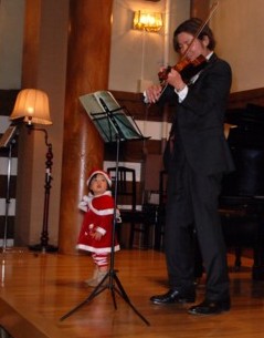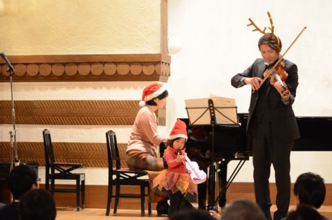 2012年 今年はバイオリンをもって登場、妖精のように可愛くなりました。パパも頑張っています!! |