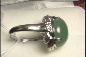 | ↑ヒスイ(未処理)です。肉眼でみたのと、鑑別書の写真は、けっこう違ってみえます。 ↓横から見て、ある程度盛り上がりが、あるのが良いです。ペッタンコで、薄いのは、評価が良くありません。 |