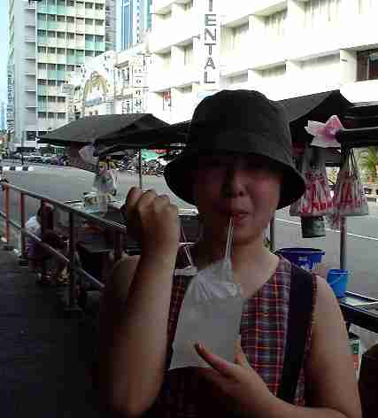 ライチ水も飲んでみました。ビニール袋入り。美味です。