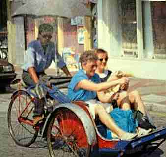 コムタ周辺ではトライショーのおじさんたちが客引きをしてます。