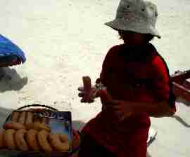 ハンモックを売ってる人とかミサンガを売ってる人とか簡易のタトゥ(刺青)をやってくれる人とかイロイロいます。