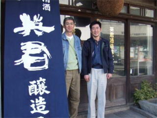 | 蔵の玄関では蔵元に出迎えられ、しばし歓談。 今年の静岡清酒鑑評会の入賞のお祝いと、先日生まれたお子さんのお祝いを・・・・・、おめでとうございます。 その後忙しい中、蔵の中を案内して頂きました。 |