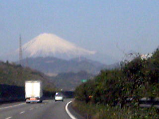 朝11時チョイ過ぎに自宅を出発し、名神、東名と高速をひたすら東上。途中、浜名湖SAで食事しようと思ったら長蛇の列で断念。次のPAで軽く天麩羅うどんを食い、またひたすら走る。 焼津を過ぎた頃に富士山が目の前に現れる。この写真は運転しながら携帯で撮ったのでボケボケですが撮り終わってバックミラーを見ると、赤色灯の車が・・・。追い越し車線じゃなく走行車線を走ってたら捕まってたかも(滝汗) 3時チョイ前に到着。片道250km弱です。 |