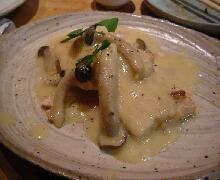 | 蟹身の蟹味噌和え | えいひれ煮付け | 秋鮭ときのこのカルボナーラ |