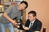 | お酒の準備 | まずはお酒の撮影会 | 山田社長からお酌 | |||