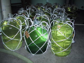 搾られたお酒が斗瓶で保管されています |